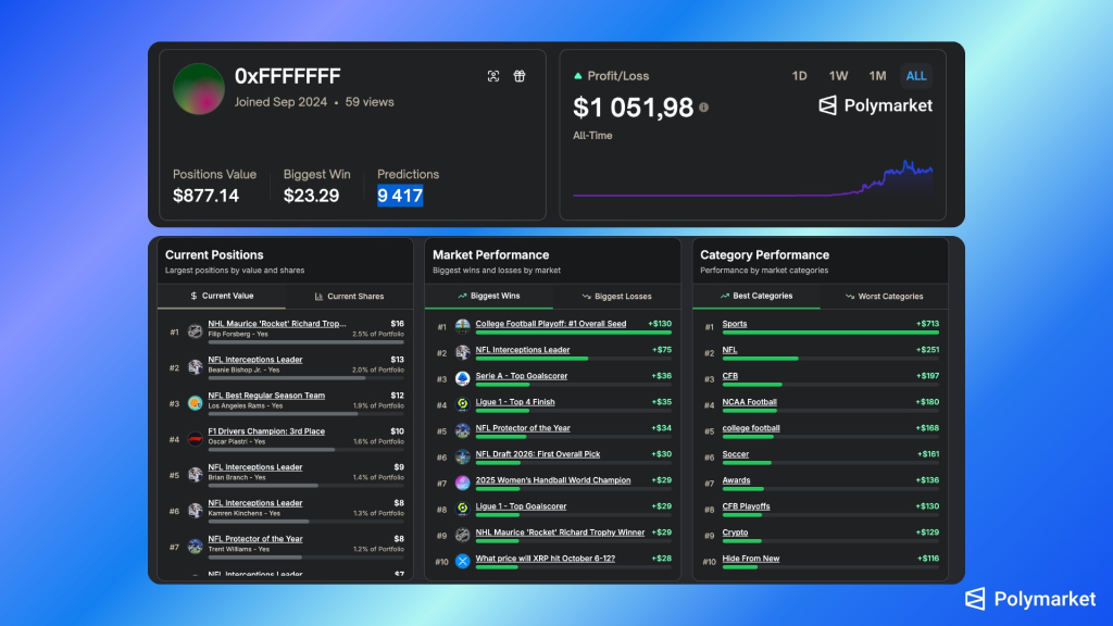 我们再对比 0xFFFFFFF 在 Polymarket Analytics 上面的统计: